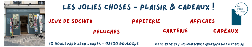 Enfin, la nouvelle boutique LES JOLIES CHOSES (à 30 mètres de la librairie "nord", au 10 boulevard Jean Jaurès) vient compléter cette offre en offrant un espace dédié aux jeux, à la papeterie (japonaise, française et britannique notamment), carterie, aux peluches et aux cadeaux pour tous les âges !