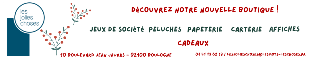Et comme les surprises n'arrivent jamais seules, nous vous annonçons l'ouverture de notre nouvelle boutique les jolies choses le 2 décembre : jeux de société, papeterie, carterie, peluches, cadeaux... au 10 boulevard Jean Jaurès !